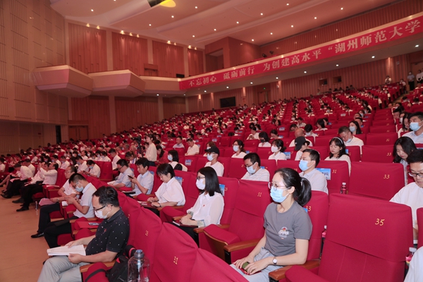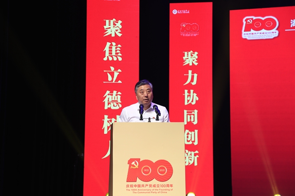 校党委书记金佩华以《重温百年辉煌路 砥砺奋进再出发 以高质量党建引领推动学校高质量发展》为题发表讲话。他指出,学校的命运是与民族和国家的命运息息相关的。学校必须始终坚持党的全面领导,必须始终坚持社会主义办学方向,必须始终坚持以实现民族复兴、国家富强为己任。他表示,近年来,学校各项事业取得了较为丰硕的成果,党的全面领导不断加强、内涵式发展不断提速、党建引领示范成效不断彰显。当前,学校已经站在了新的历史起点上,接下来一段时期,是完成习近平总书记重要嘱托、实现“大学梦”的关键期,是贯彻校第四次党代会精神、落实“三步走”战略目标和“3918”战略体系的关键期,也是学校由教学型向教学研究型大学转型发展的关键期。