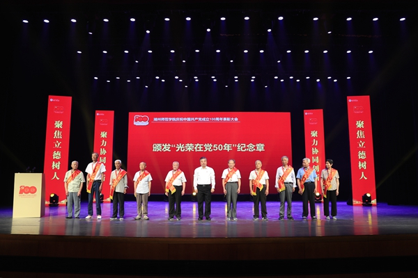 金佩华强调,学校要牢牢把握奋进方向和聚力发展重点,要始终加强党对人才工作的领导,要奋力走好创建高水平“湖州师范大学”的坚定步伐,要持续提高人才培养质量和社会服务水平,要切实加强党的全面领导和党的建设。他希望全校各级党组织、全体共产党员牢记使命、敢于担当,在教学、科研、管理、服务、医疗卫生等各个岗位上发挥好战斗堡垒和先锋模范作用,团结带领广大师生员工,迎难而上、不懈奋斗,为学校发展作出新的贡献。为此,他向师生党员们提出了四点要求,一是要始终做到政治过硬,争做习近平新时代中国特色社会主义思想的信仰者实践者;二是要始终做到责任过硬,争做学校事业发展的引领者推动者;三是要始终做到能力过硬,争做各自工作领域里的有为者佼佼者;四是要始终做到作风过硬,争做政治生态最优高校的建设者保护者。