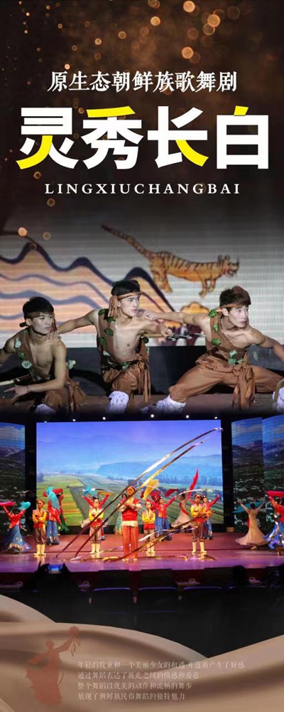演出介绍:原生态朝鲜族歌舞剧《灵秀长白》以鸭绿江文化情真意切的为核心,以长白山、鸭绿江、朝鲜族家园为创作背景,贯穿一条从远古到现代的时间线索,分为三个篇章“父·山魂、母·河情、家·国韵”,来展示长白县人民美好生活和精神风貌,弘扬勤勉进取的长白县精神,传承优秀民族文化,创作民族优秀文艺精品,呈现一台兼具文化高度、民俗深度、精神力度的舞台剧。