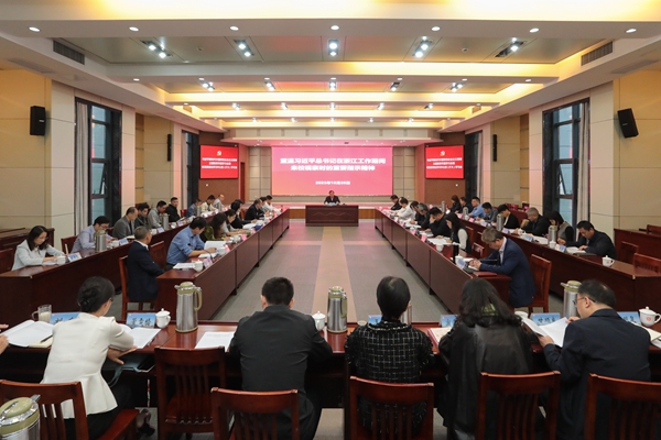 10月20日上午,久久精品一区二区召开学习贯彻习近平新时代中国特色社会主义思想主题教育专题学习会暨校党委理论学习中心组(扩大)学习会,重温习近平总书记在浙江工作期间来校视察时的重要指示精神,中心组全体成员、全体中层正职参加。会议由校党委书记金佩华主持。
