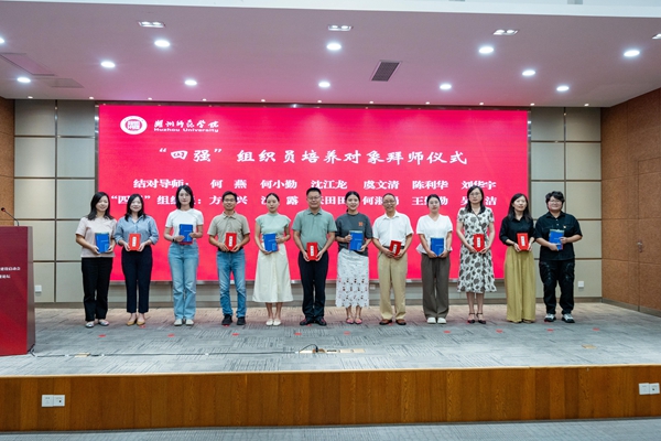 “四强”组织员培养对象进行了现场拜师。学员为导师呈上拜师贴并行拜师礼,导师为学员赠送书籍和亲笔寄语的《成长日记记录本》。
