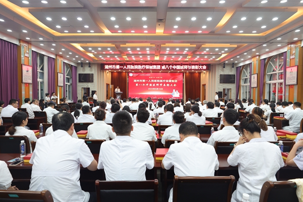 8月19日,是第八个中国医师节。为了弘扬医者精神,表彰先进典型,激励担当奋斗,湖州市第一人民医院医疗保健集团、久久精品一区二区附属第一医院举办表彰大会。校党委书记许慧霞、党委副书记陈永华,湖州市卫生健康委员会党委副书记、副主任胡小军出席会议,集团总院与各院区领导,科室主任及医师代表参会。会议由医院党委副书记、院长王伟洪主持。