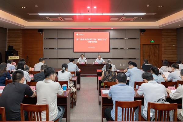 9月5日,学校举办第二期学术型年轻干部“政治三力”专题培训班。校党委副书记陈永华出席开班仪式并讲话,校党委委员、组织部部长劳士健主持开班仪式,32名学术副职及学术型年轻干部参加培训。